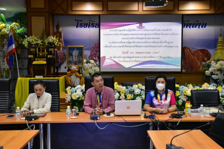 เมื่อวันอังคารที่ 14 พฤษภาคม 2567 งานประกันคุณภาพการศึกษา โรงเรียนน่านปัญญานุกูล จังหวัดน่าน จัดประชุมเชิงปฏิบัติการการสื่อสารสร้างความเข้าใจ ระบบการประกันคุณภาพและมาตรฐานการศึกษาในสถานศึกษา และการประกันคุณภาพภายนอก ระดับปฐมวัย และระดับการศึกษาขั้นพื้นฐานเพื่อสร้างความเข้าใจและเตรียมความพร้อมการประกันคุณภาพ การศึกษา ในการนี้นายสมพงษ์ อุ่นใจ ผู้อำนวยการสถานศึกษาได้มอบนโยบายในการขับเคลื่อนการประกันค