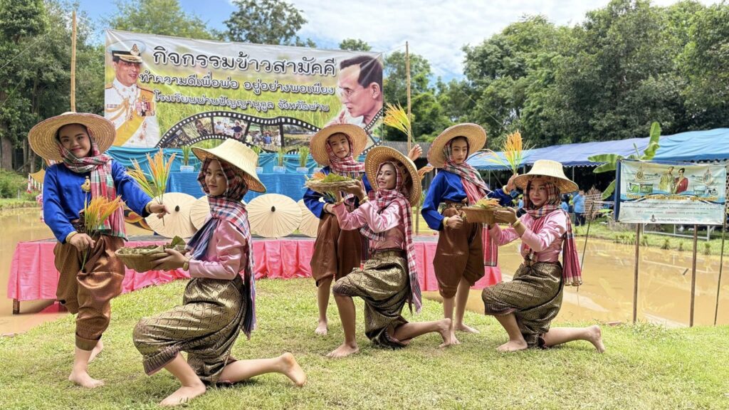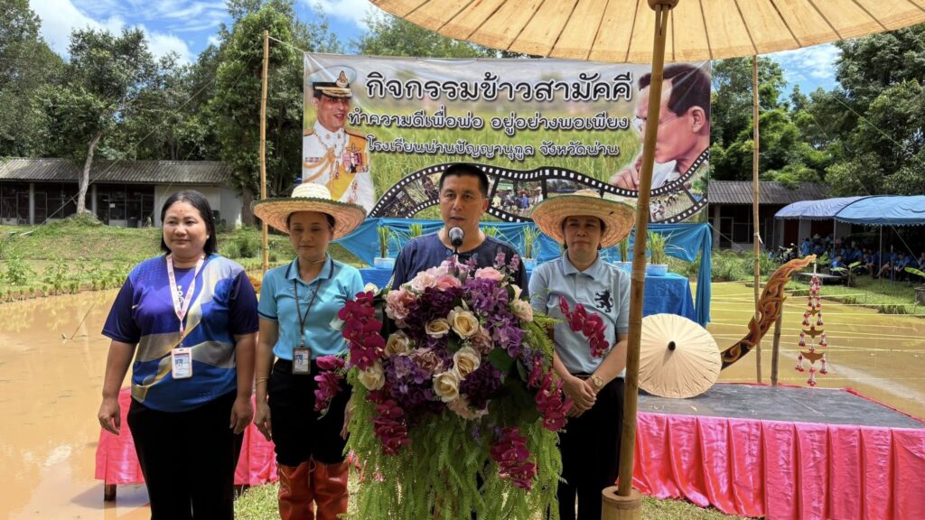 เมื่อวันที่ 8 สิงหาคม 2568 เวลา 13.00 น. นายสมพงษ์ อุ่นใจ ผู้อำนวยการโรงเรียน มอบหมายให้นายพงศกาญจน์ คำสีแก้ว รองผู้อำนวยการโรงเรียน เป็นประธานในพิธี พร้อมด้วยผู้บริหาร คณะครู บุคลากรและนักเรียน จัดกิจกรรมข้าวสามัคคี ทำความดีเพื่อพ่อ อยู่อย่างพอเพียง (ดำนา)ปีที่ 10 โดยมีวัตถุประสงค์เพื่อส่งเสริมให้นักเรียนได้เรียนรู้อาชีพทำนา ซึ่งเป็นอาชีพหลักของคนไทย ส่งเสริม ให้ครู บุคลากรและนักเรียน มีความสมัครสมานสามัคคีในการทำงาน และเป็นการรักษาขนบธรรมเนียมประเพณีอันดีงามของไทย ที่มีมาแต่โบราณ โดยในงานประกอบด้วย การแสดงทางนาฏศิลป์ของนักเรียน การให้ความรู้เกี่ยวกับการปลูกข้าว การแข่งขันปลูกข้าวและกองเชียร์แต่ละสาย ณ โรงเรียนน่านปัญญานุกูล จังหวัดน่าน