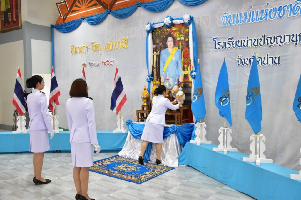เมื่อวันที่ 8 สิงหาคม 2568 เวลา 09.00 น. นายสมพงษ์ อุ่นใจ ผู้อำนวยการโรงเรียนมอบหมายให้นางมาลินี ธนะสมบัติ รองผู้อำนวยการโรงเรียน เป็นประธานในพิธี พร้อมด้วยคณะผู้บริหาร ครู บุคลากรและนักเรียน เนื่องในโอกาสวันเฉลิมพระชนมพรรษาสมเด็จพระนางเจ้าสิริกิติ์ พระบรมราชินีนาถ พระบรมราชชนนีพันปีหลวง ประจำปีพุทธศักราช 2568 และในงานประกอบด้วยพิธีวางพานพุ่มเงิน พานพุ่มทองฯ พิธีลงนามถวายพระพรกิจกรรมการแสดงเทิดพระเกียรติฯกิจกรรมมอบเกียรติบัตร ลูกกตัญญู ประจำปี 2568 กิจกรรมร้องเพลงเนื่องในวันแม่แห่งชาติ และกิจกรรมสวดมนต์ไหว้พระ และนั่งสมาธิ ณหอประชุมพญาภูคา โรงเรียนน่านปัญญานุกูลจังหวัดน่าน