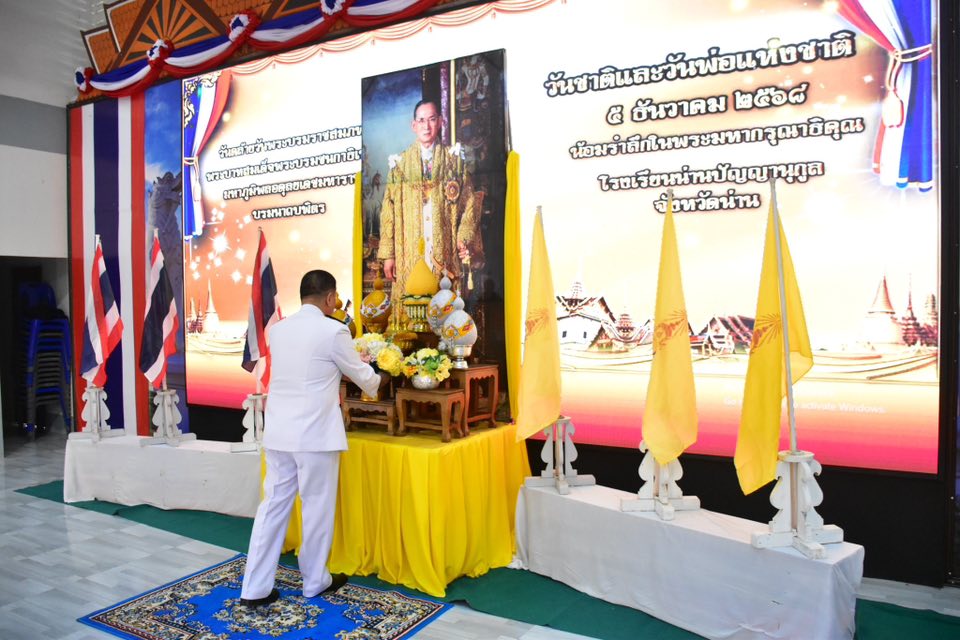 เมื่อวันที่ 4 ธันวาคม 2568 โรงเรียนน่านปัญญานุกูล จังหวัดน่าน จัดกิจกรรมเนื่องในวันคล้ายวันพระราชสมภพ พระบาทสมเด็จพระบรมชนกาธิเบศร มหาภูมิพลอดุลยเดชมหาราช บรมนาถบพิตร วันชาติและวันพ่อแห่งชาติ กิจกรรมทำบุญตักบาตรเพื่อถวายเป็นพระราชกุศล และน้อมรำลึกในพระมหากรุณาธิคุณ มีพิธีทำบุญตักบาตรถวายเป็นพระราชกุศล ถวายพานพุ่มดอกไม้เบื้องหน้าพระบรมฉายาลักษณ์ พระบาทสมเด็จพระบรมชนกาธิเบศร มหาภูมิพลอดุลยเดชมหาราช บรมนาถบพิตร กล่าวน้อมรำลึก และพิธีถวายบังคม