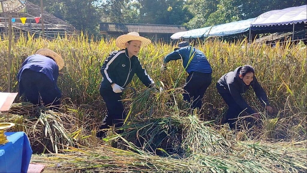 เมื่อวันที่ 4 ธันวาคม 2568 โรงเรียนน่านปัญญานุกูล จังหวัดน่าน จัดกิจกรรม ข้าวสามัคคี ทำดีเพื่อพ่อ อยู่อย่างพอเพียง ลงแขกเกี่ยวข้าว โดยมีนายสมพงษ์ อุ่นใจ ผู้อำนวยการโรงเรียนน่านปัญญานุกูล คณะผู้บริหาร ครู บุคลากร นักเรียน ร่วมกิจกรรมข้าวสามัคคี ทำดีเพื่อพ่อ อยู่อย่างพอเพียง ลงแขกเกี่ยวข้าว เป็นกิจกรรมที่จัดขึ้นเพื่อถวายเป็นพระราชกุศลแด่พระบาทสมเด็จพระเจ้าอยู่หัว พร้อมใจกันทำขึ้นเพื่อตามรอยพ่อ ตามหลักปรัชญาของเศรษฐกิจพอเพียง พระบาทสมเด็จพระบรมชนกาธิเบศร มหาภูมิพลอดุลยเดชมหาราช บรมนาถบพิตร ทางคณะครูได้นำมาสอดแทรกในการจัดการเรียนการสอน ให้กับนักเรียนในทุกระดับชั้น เพื่อให้นักเรียนได้เห็นความสำคัญของอาชีพทำนาและมีทักษะในอาชีพทำนา