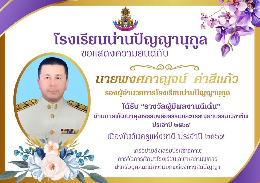 ซึ่งเป็นรางวัลแห่งความภาคภูมิใจ อันเกิดจากความรู้ ความสามารถ ความเสียสละ และความมุ่งมั่นในการพัฒนาการศึกษาอย่างต่อเนื่อง เป็นผู้นำทางการศึกษาที่เปี่ยมด้วยคุณค่าและแรงบันดาลใจตลอดไป