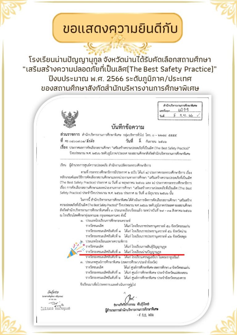 เมื่อวันที่ 21 สิงหาคม 2566 โรงเรียนน่านปัญญานุกูล โดยการนำของนายสมพงษ์ อุ่นใจ ผู้อำนวยการโรงเรียนน่านปัญญานุกูล คณะผู้บริหาร ครู บุคลากร และนักเรียน ร่วมกัน จัดกิจกรรมโครงการน้ำพระทัยพระราชทานส่วนภูมิภาค สมาคมสภาสังคมสงเคราะห์แห่งประเทศไทย ในพระบรมราชูปถัมภ์ ประจำปี 2566 เพื่อเฉลิมพระเกียรติสมเด็จพระนางเจ้าสิริกิติ์ พระบรมราชินีนาถ พระบรมราชชนนีพันปีหลวงจัดโดย สมาคมสภาสังคมสงเคราะห์แห่งประเทศไท